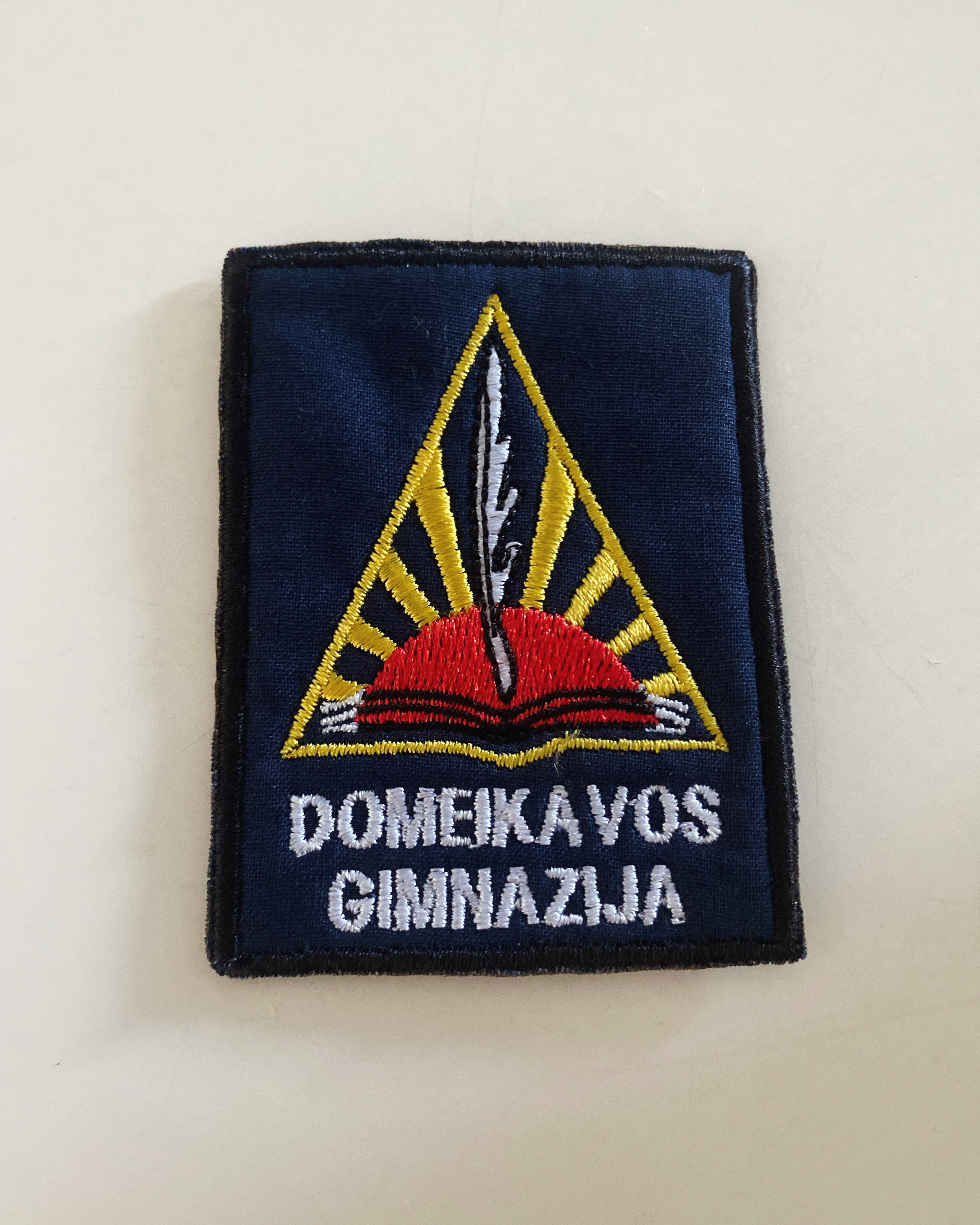 Kaunor raj. Domeikavos gimnazijos emblema. Aukštis ~7.5 cm. Emblema yra prisiuvama.